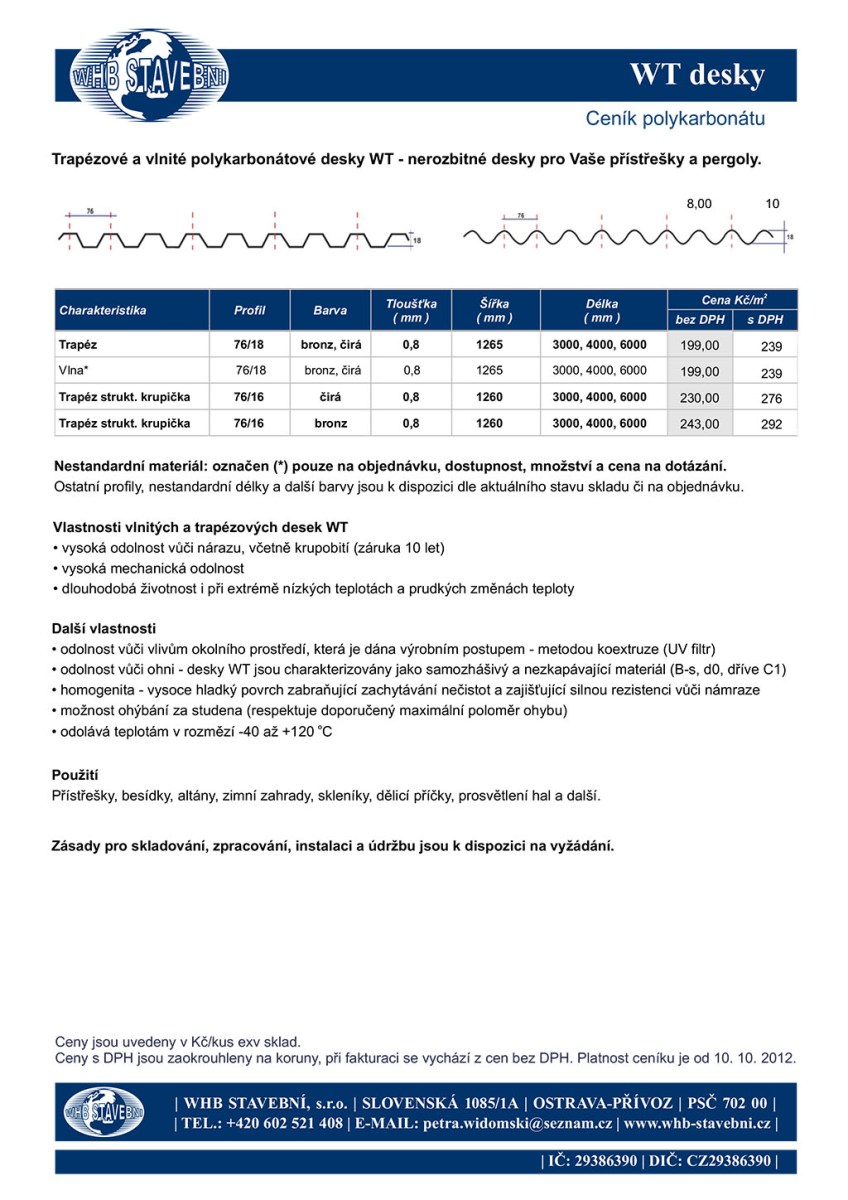 WT - nerozbitné desky pro Vaše přístřešky a pergoly.