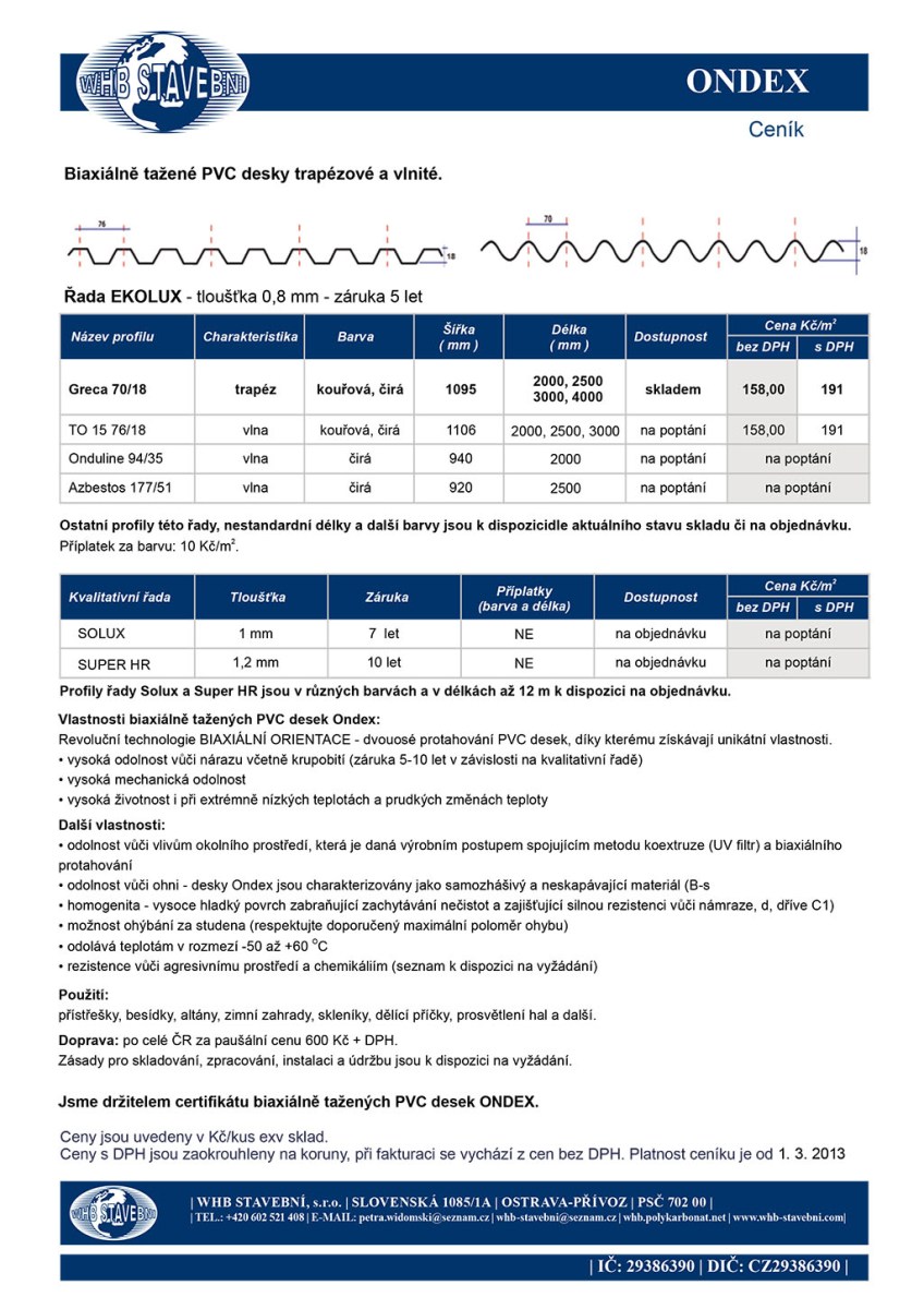 Použití: prosvětlovací pásy, protihlukové stěny, přestřešení nástupišť, přestřešení volných ploch a čekáren, kryty na bazény, ...