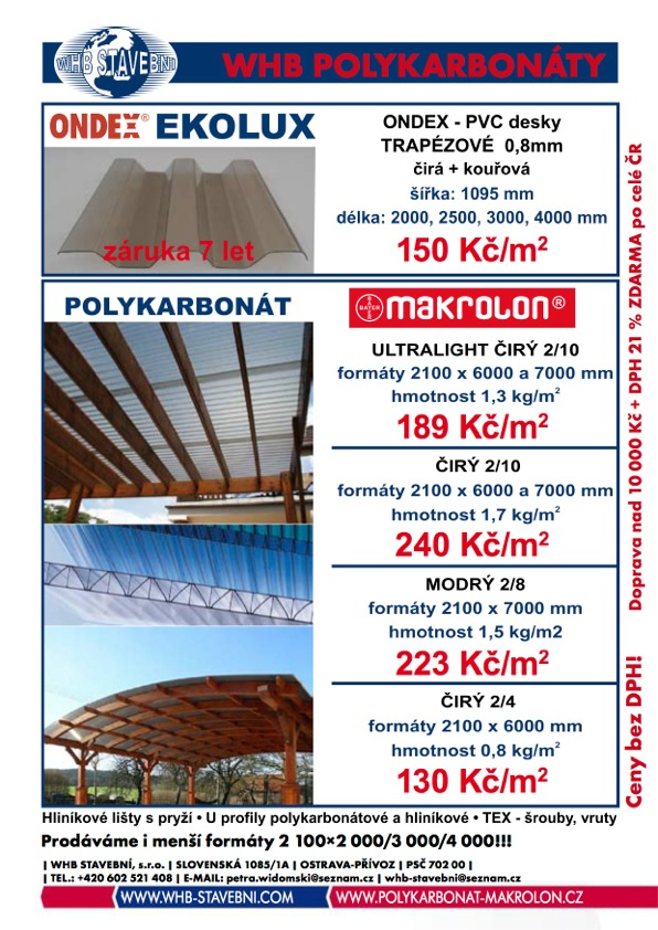 Polykarbonát, polykarbonátové desky, polykarbonát Makrolon. Prodej polykarbonátu a polykarbonátových desek světoznámých značek Makrolon, Palram, Politec a Rodeca.![]()
